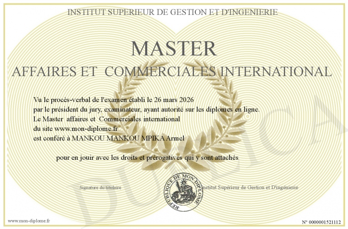 Envoyez par email votre Master affaires et Commerciales international personalisé