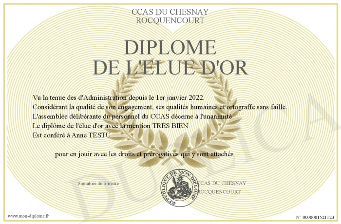 Envoyez par email votre Diplôme dE L'ELUE D'OR personalisé