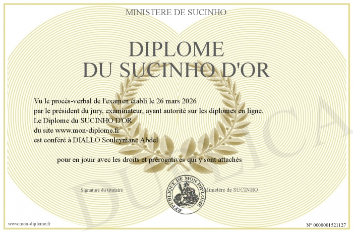 Envoyez par email votre Diplôme du SUCINHO D'OR personalisé