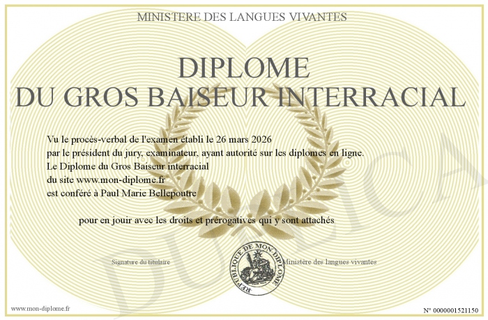 Envoyez par email votre Diplôme du Gros Baiseur interracial personalisé