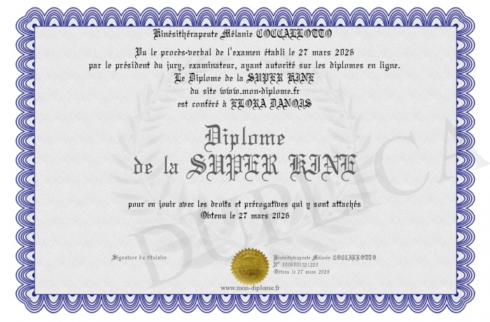 Envoyez par email votre Diplôme de la SUPER KINE personalisé