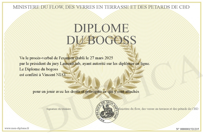 Envoyez par email votre Diplôme du bogoss personalisé