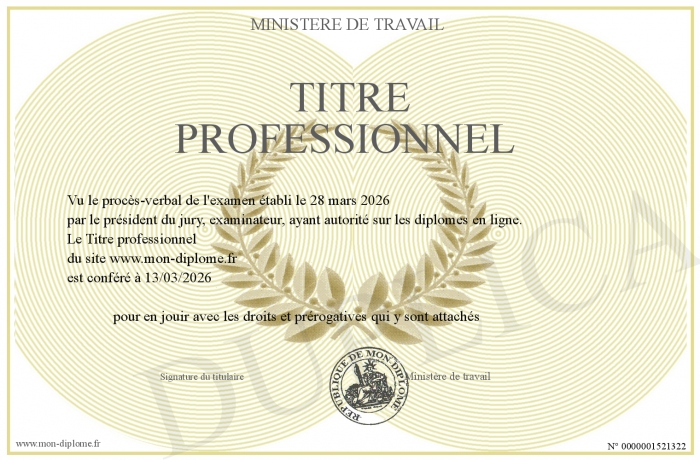 Envoyez par email votre Titre professionnel personalisé