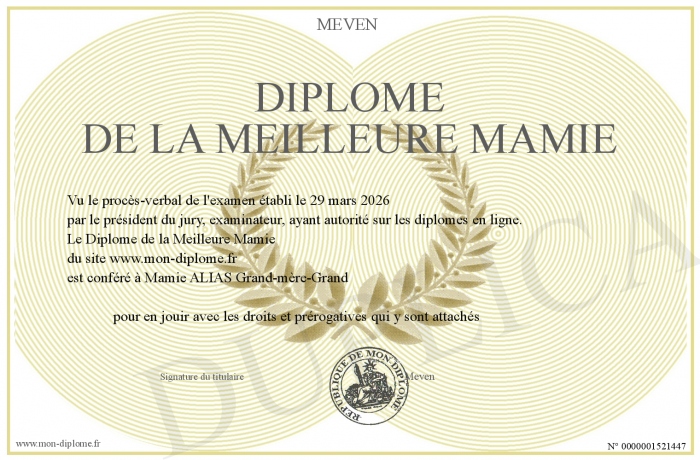 Envoyez par email votre Diplôme de la Meilleure Mamie personalisé