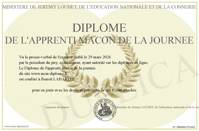 Envoyez par email votre Diplôme de l'apprenti macon de la journée personalisé