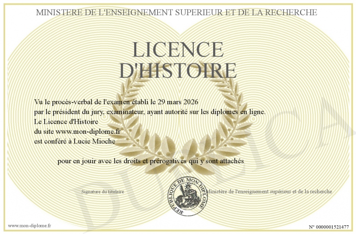 Envoyez par email votre Licence d'Histoire personalisé