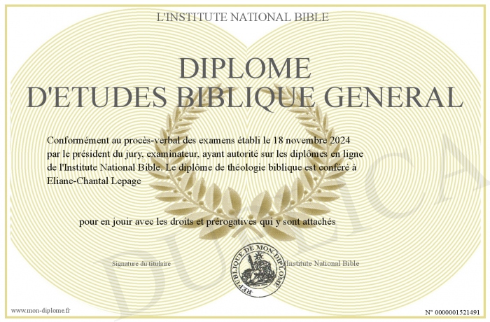 Envoyez par email votre Diplôme d'études biblique général personalisé