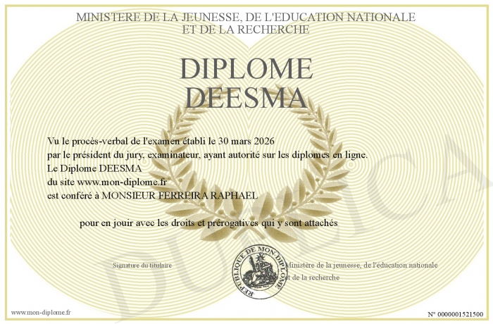 Envoyez par email votre Diplôme DEESMA personalisé