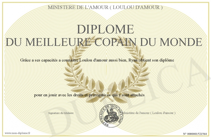 Envoyez par email votre diplôme du meilleure copain du monde personalisé