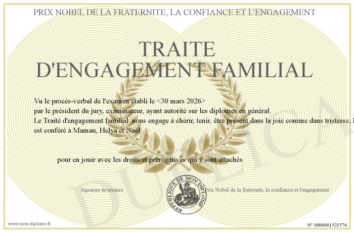 Envoyez par email votre Traité d'engagement familial personalisé