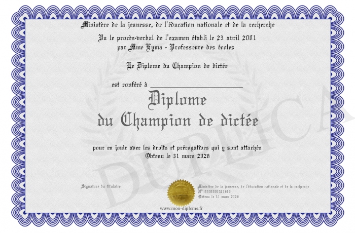 Envoyez par email votre Diplôme du Champion de dictée personalisé