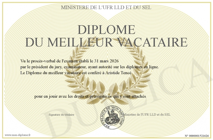 Envoyez par email votre Diplôme du meilleur vacataire personalisé