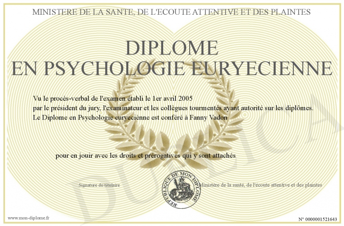 Envoyez par email votre Diplôme en Psychologie euryeciènne personalisé