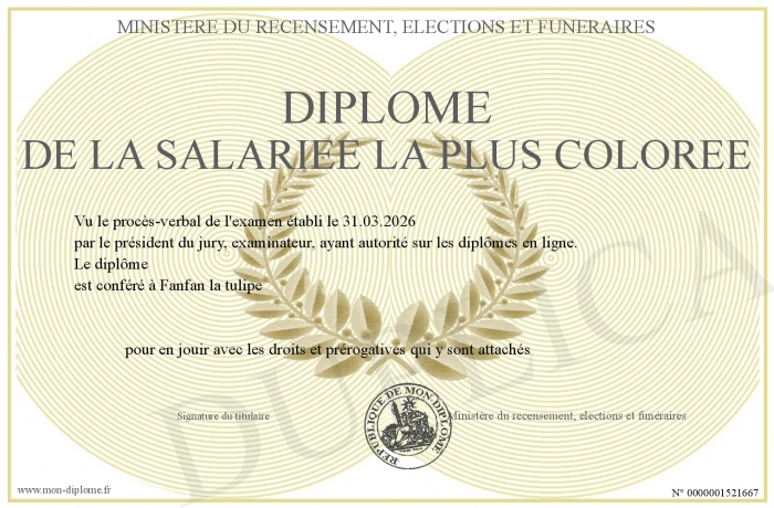Envoyez par email votre Diplôme de la salariée la plus colorée personalisé