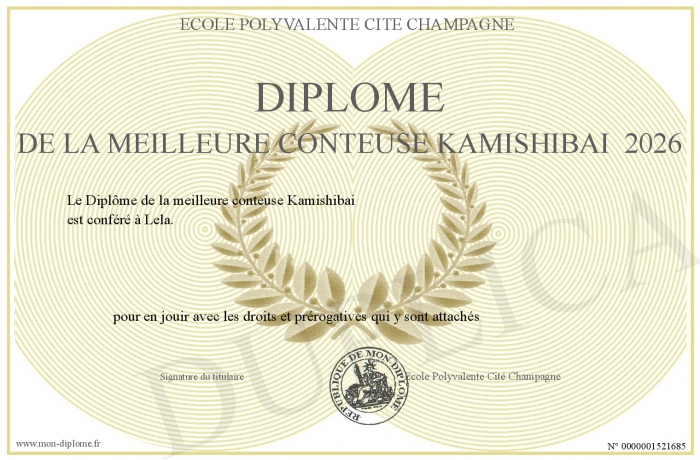 Envoyez par email votre Diplôme de la meilleure conteuse Kamishibai 2026 personalisé