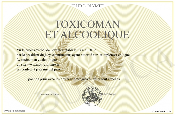 Envoyez par email votre toxicoman et alcoolique personalisé