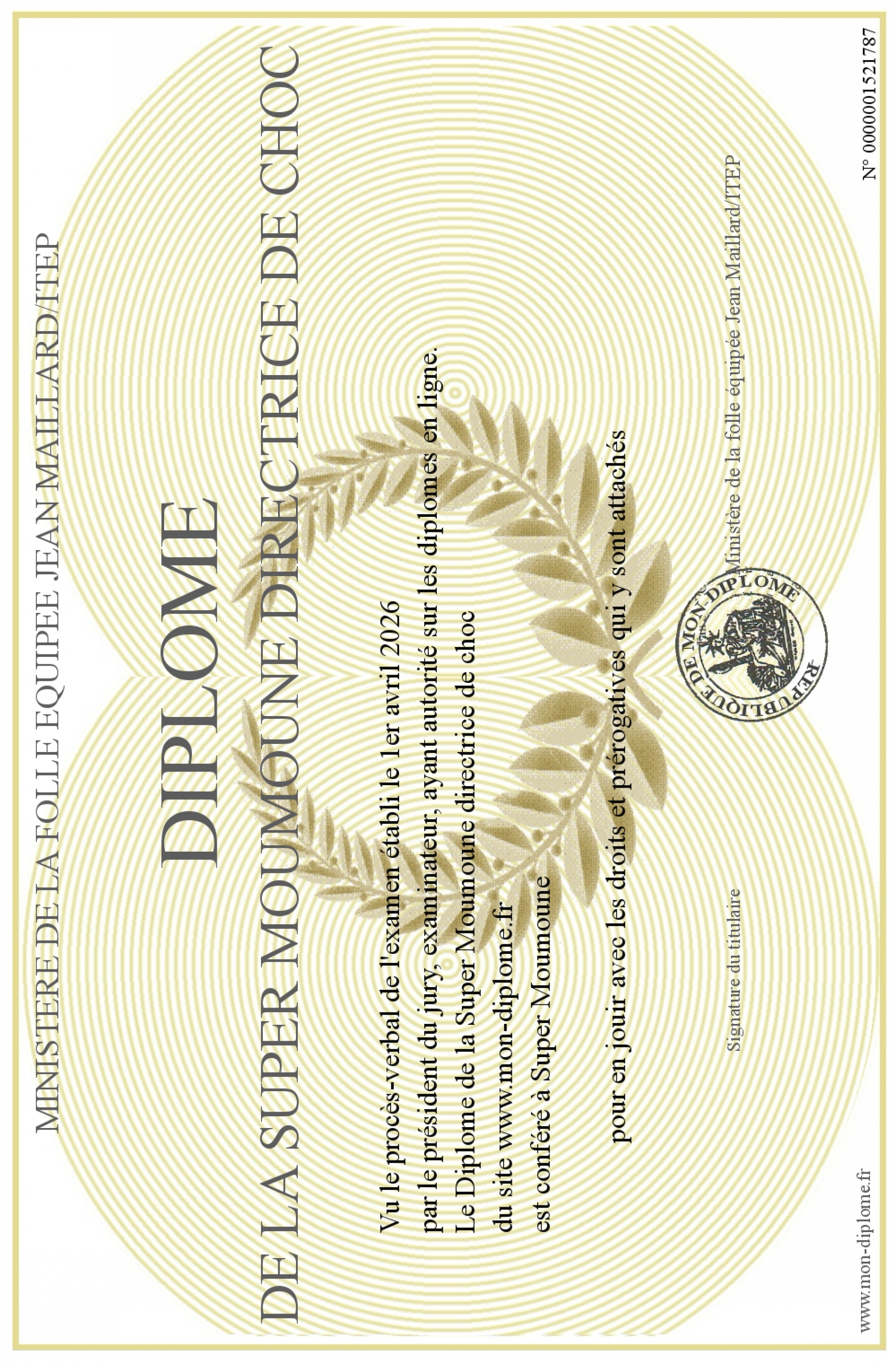 Envoyez par email votre Diplôme de la Super Moumoune directrice de choc personalisé