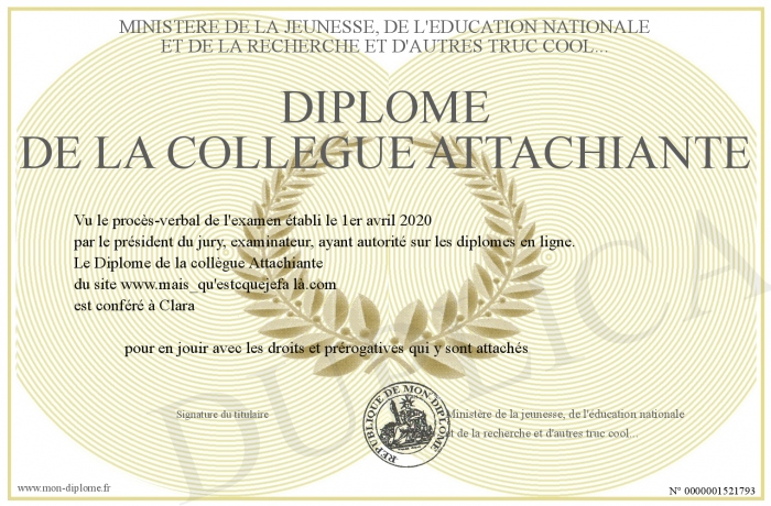 Envoyez par email votre Diplôme de la collègue Attachiante personalisé