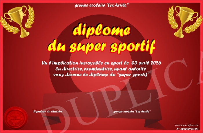 Envoyez par email votre diplôme du super sportif personalisé