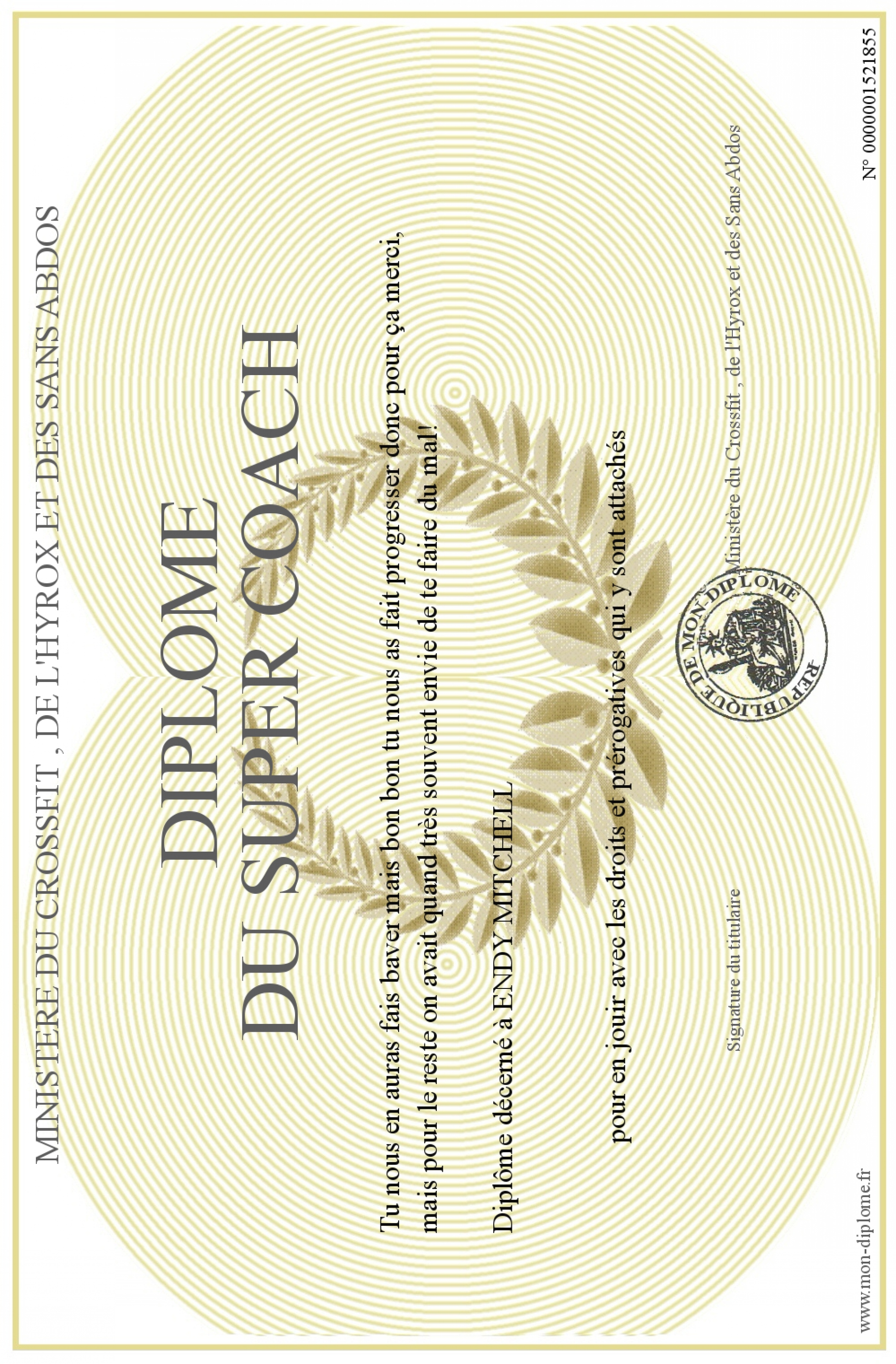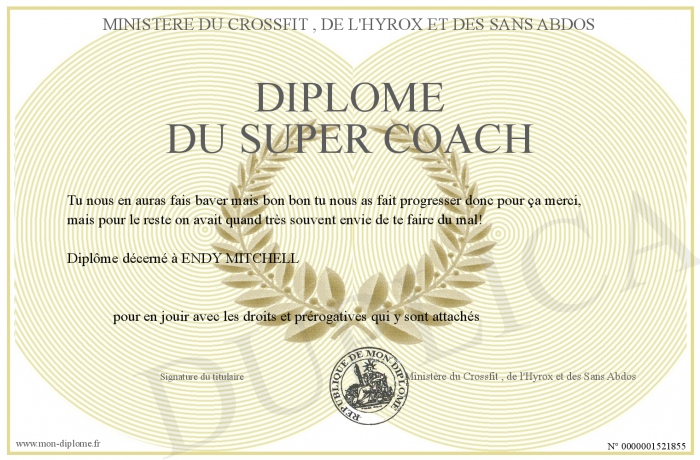 Envoyez par email votre Diplôme du Super Coach personalisé
