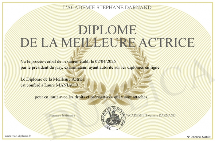Envoyez par email votre Diplôme de la Meilleure Actrice personalisé