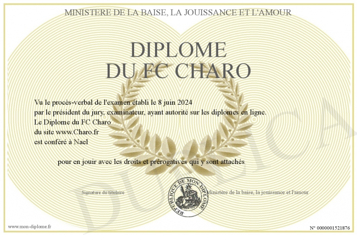 Envoyez par email votre Diplôme du FC Charo personalisé
