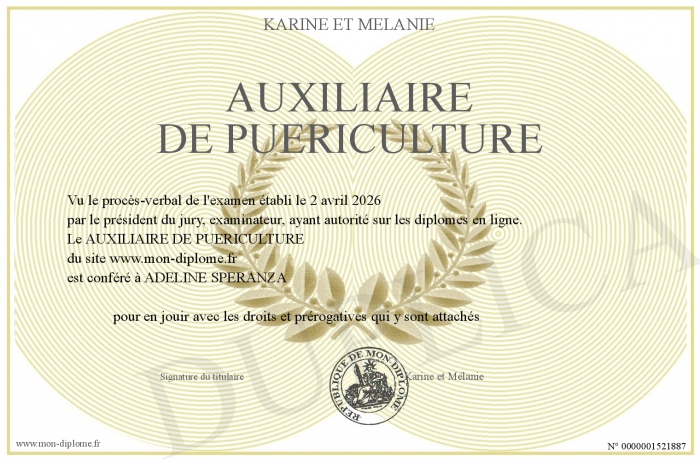 Envoyez par email votre AUXILIAIRE DE PUERICULTURE personalisé