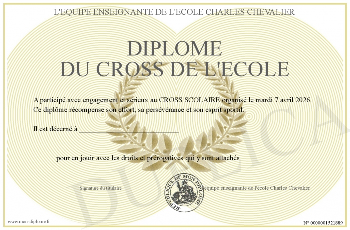 Envoyez par email votre Diplôme du CROSS de l'école personalisé