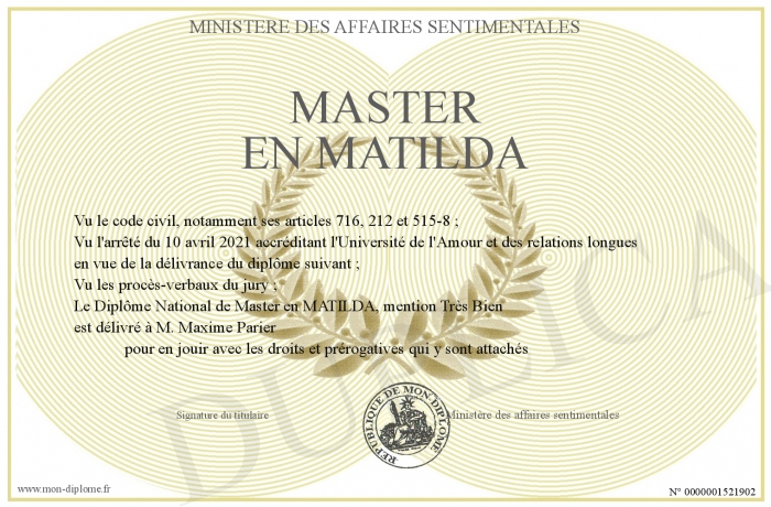 Envoyez par email votre Master en Matilda personalisé