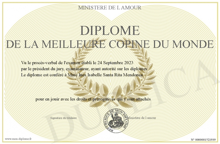 Envoyez par email votre Diplôme de la meilleure copine du monde personalisé