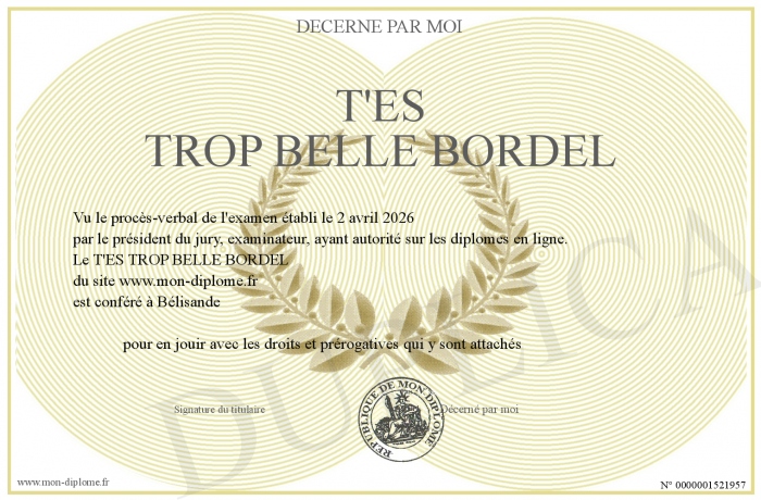 Envoyez par email votre T'ES TROP BELLE BORDEL personalisé