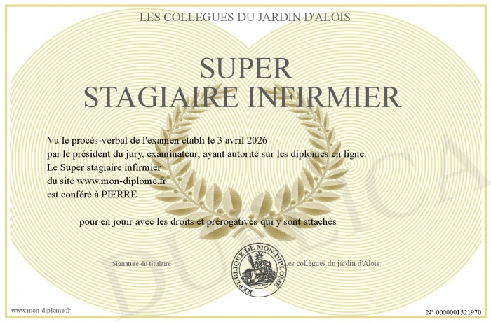 Envoyez par email votre Super stagiaire infirmier personalisé
