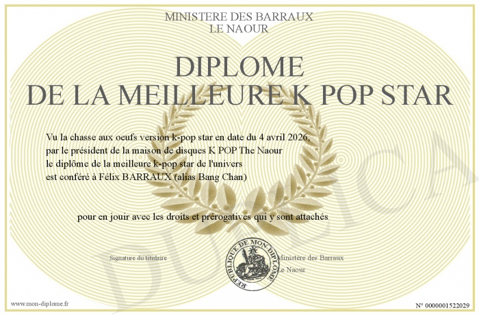 Envoyez par email votre Diplôme de la meilleure K POP STAR personalisé