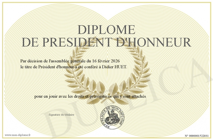 Envoyez par email votre Diplôme de président d'honneur personalisé