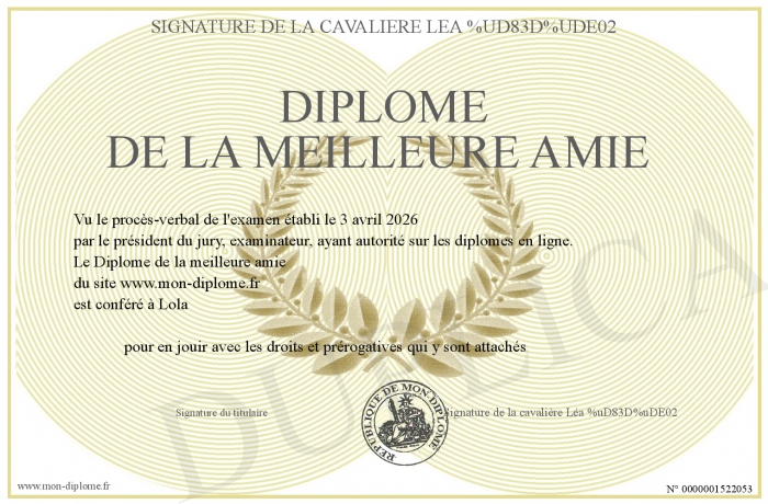 Envoyez par email votre Diplôme de la meilleure amie personalisé