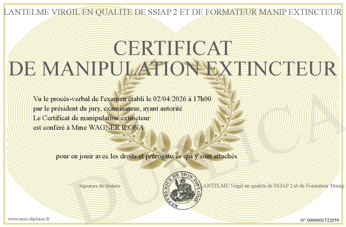 Envoyez par email votre Certificat de manipulation extincteur personalisé