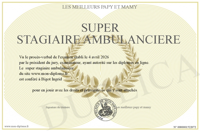 Envoyez par email votre super stagiaire ambulancière personalisé