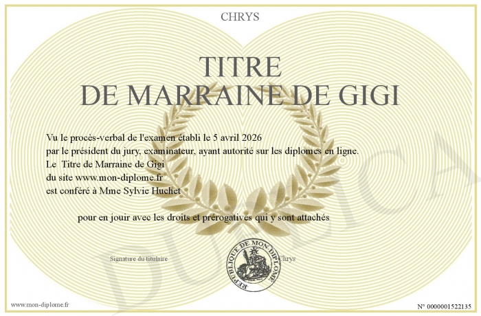 Envoyez par email votre Titre de Marraine de Gigi personalisé