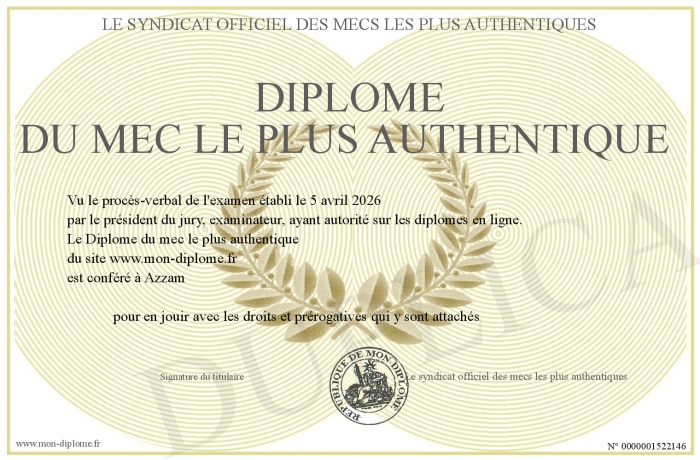 Envoyez par email votre Diplôme du mec le plus authentique personalisé