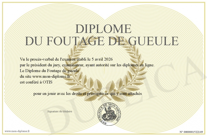 Envoyez par email votre Diplôme du Foutage de gueule personalisé