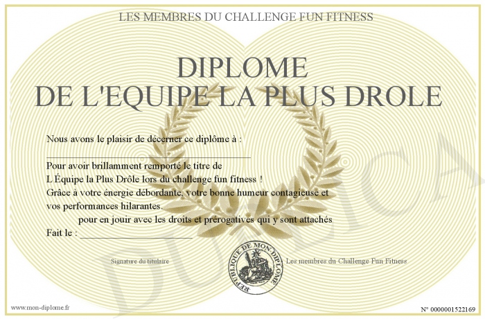 Envoyez par email votre Diplôme de l'équipe la plus drôle personalisé