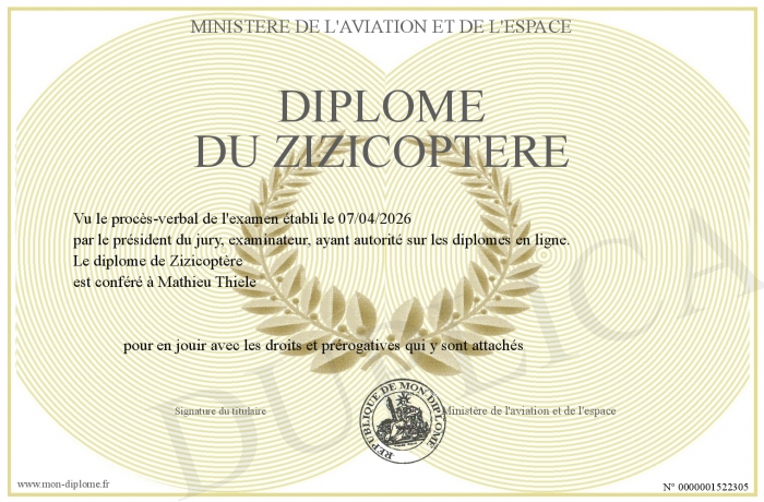 Envoyez par email votre Diplôme du ZIZICOPTERE personalisé