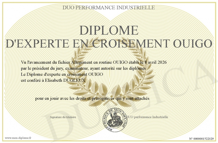 Envoyez par email votre Diplôme d'experte en croisement OUIGO personalisé