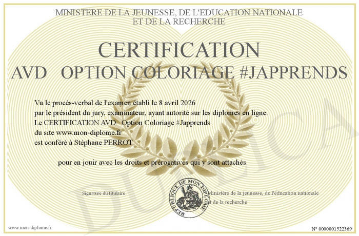 Envoyez par email votre CERTIFICATION AVD Option Coloriage #Japprends personalisé