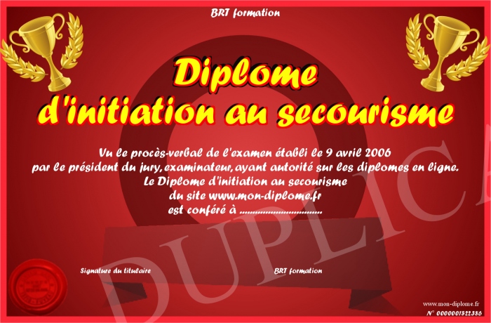 Envoyez par email votre Diplôme d'initiation au secourisme personalisé