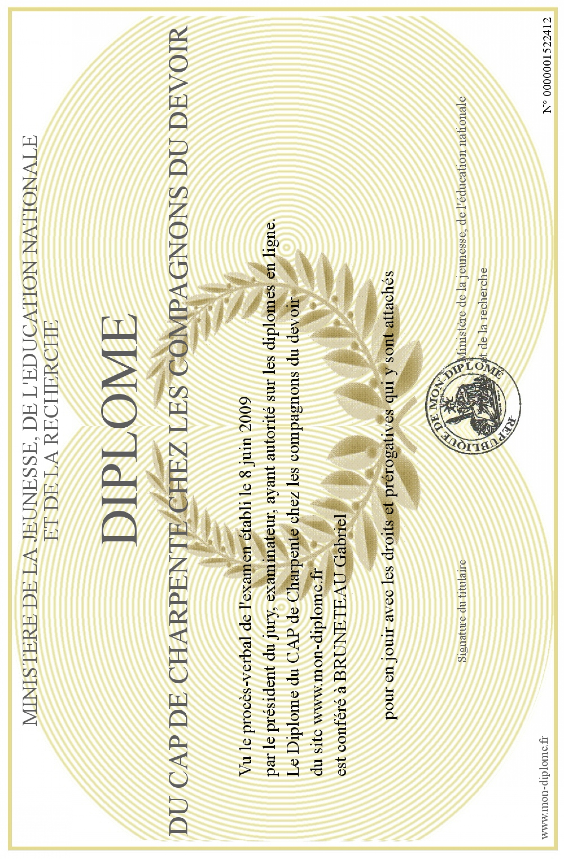 Envoyez par email votre Diplôme du CAP de Charpente chez les compagnons du devoir personalisé