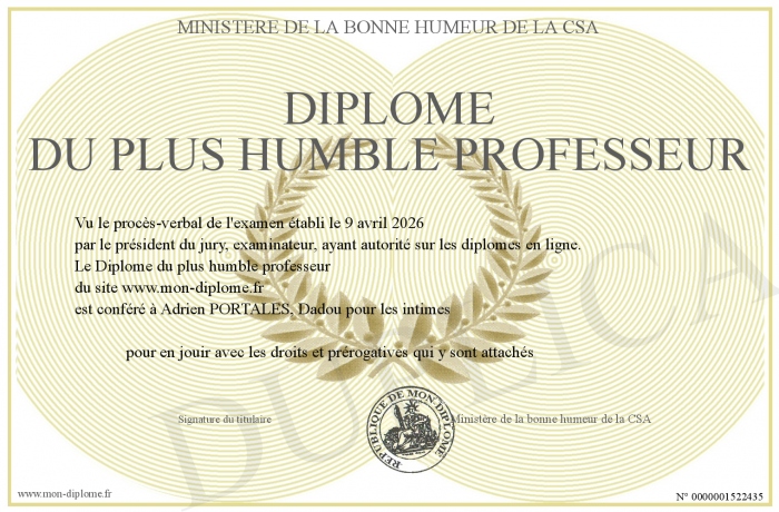 Envoyez par email votre Diplôme du plus humble professeur personalisé