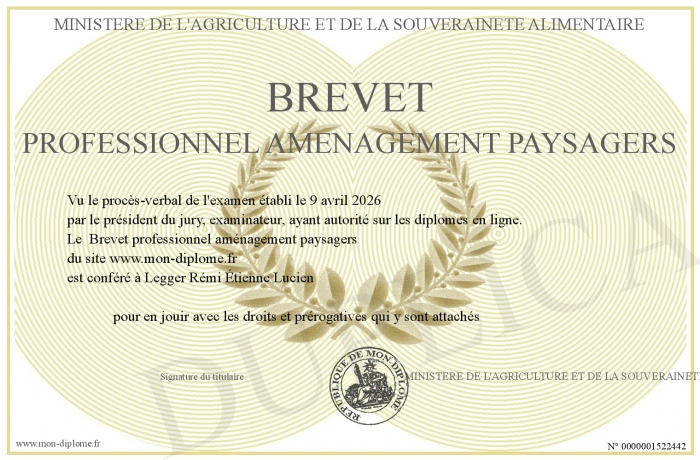 Envoyez par email votre Brevet professionnel aménagement paysagers personalisé