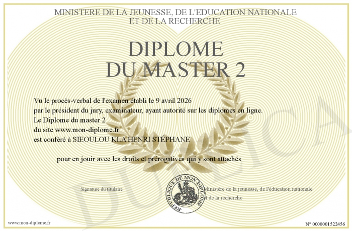 Envoyez par email votre Diplôme du master 2 personalisé