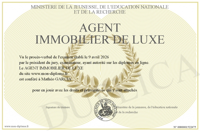 Envoyez par email votre AGENT IMMOBILIER DE LUXE personalisé